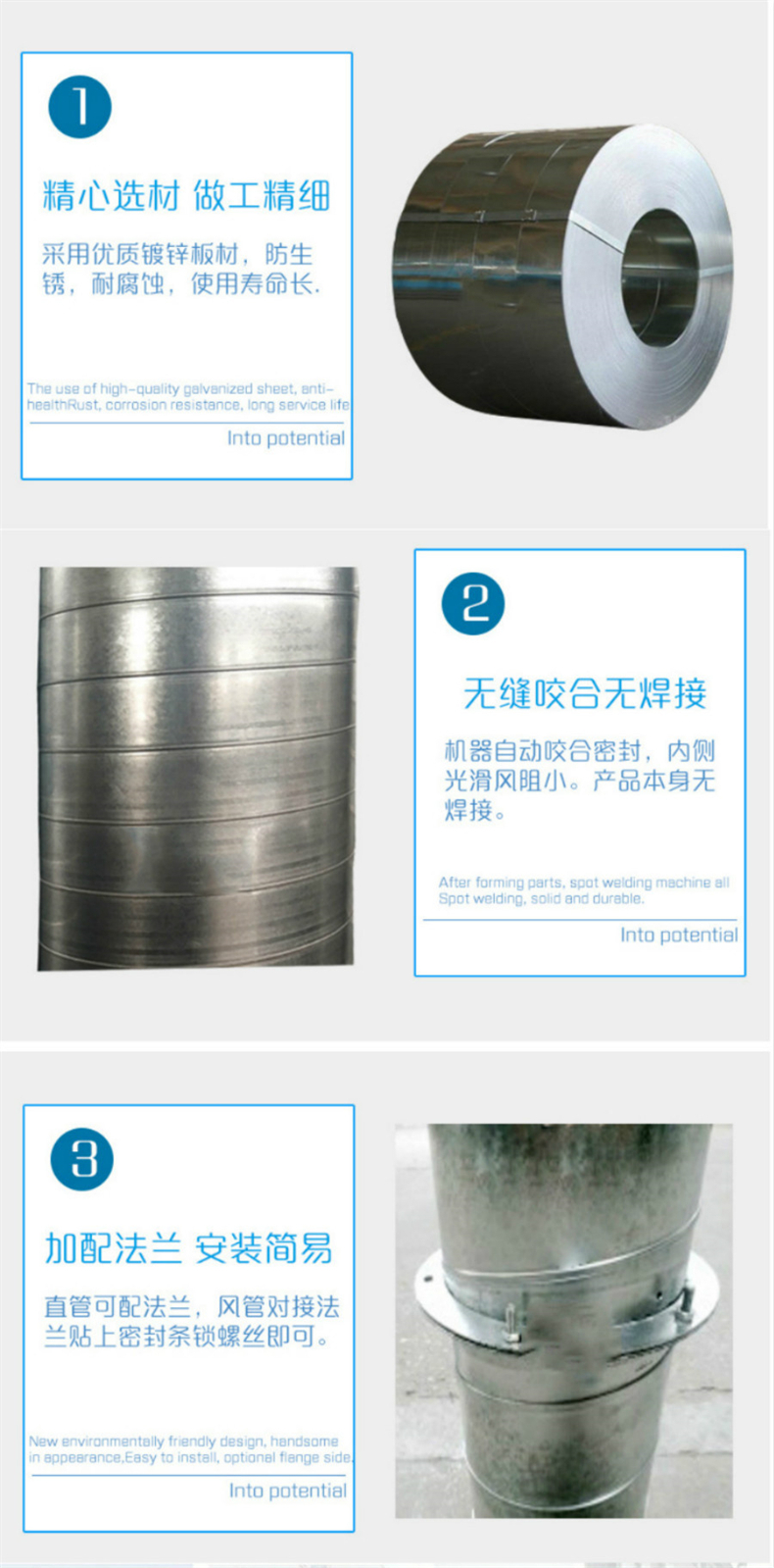 | 牌号:螺旋风管 | 材质:镀锌风管 |
